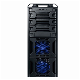 - 2 x front black 120 mm fans with blue LEDs and speed control knobs for HDDs