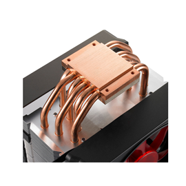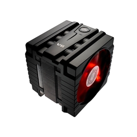•"Double-V" heatpipe array helps spread out the six heatpipes to fully utilize the cooling fins on the cooler. It also allows airflow to reach each individual heatpipe as opposed to traditional coolers.