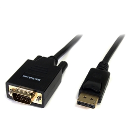 This 6ft DisplayPort to VGA (M-M) Cable lets you connect a VGA capable display to a DisplayPort video card/source. The cable provides a connection distance of 6 feet and features a male VGA connector and a male DisplayPort connector.