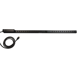 PDUMNV30 Monitored 70 in. / 178 cm 0U vertical rack PDU supports 30A peak capacity at 120V (agency de-rated to 24 amps continuous). Includes attached L5-30P input cordset and 24 5-15/20R outlets. Visual and remote current monitoring tracks real time output current level. Supports 0U vertical rackmount installation with included mounting brackets. Toolless button-mount installation supported in compatible racks. Included cord retention brackets keep vital network equipment plugged in and continuously powered.