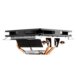A unique heat pipe layout is utilized that orients the heat pipes to direct the flow of heat more efficiently to the aluminum fins where the heat is exhausted. Much like the GeminII S524, GeminII M4 features an airflow design that is 90 degree rotated to avoid heat radiating from the motherboard. In turn, this orientation simultaneously provides a steady airflow to motherboard chipsets surrounding the CPU socket.