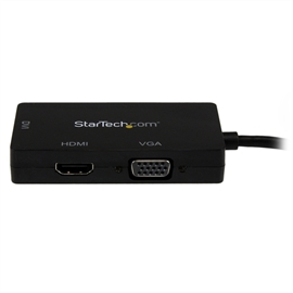The MDP2VGDVHD Mini DisplayPort to VGA, DVI or HDMI converter offers a 3-in-1 solution for connecting an mDP source such as an Ultrabook or MacBook laptop to a VGA, DVI, or HDMI Display, ensuring compatibility with almost any display, television or projector -- an ideal plug-and-play solution for travel, or BYOD (Bring Your Own Device) applications at the office.