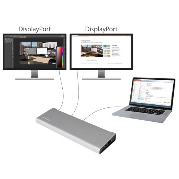 Dual-display configuration is available when connected to two DisplayPort monitors, or a DisplayPort and a Thunderbolt monitor. Your laptop hardware must support dual-external displays through its Thunderbolt 2 port