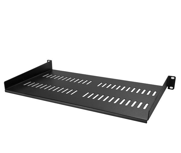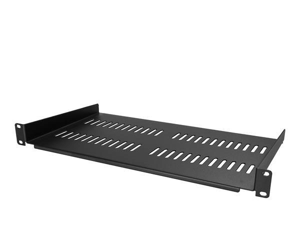 This 1U rack shelf lets you add 10 in. of flat storage space to any EIA-310 compliant server rack or cabinet. The shelf is vented to improve air flow and help lower temperatures in your rack.