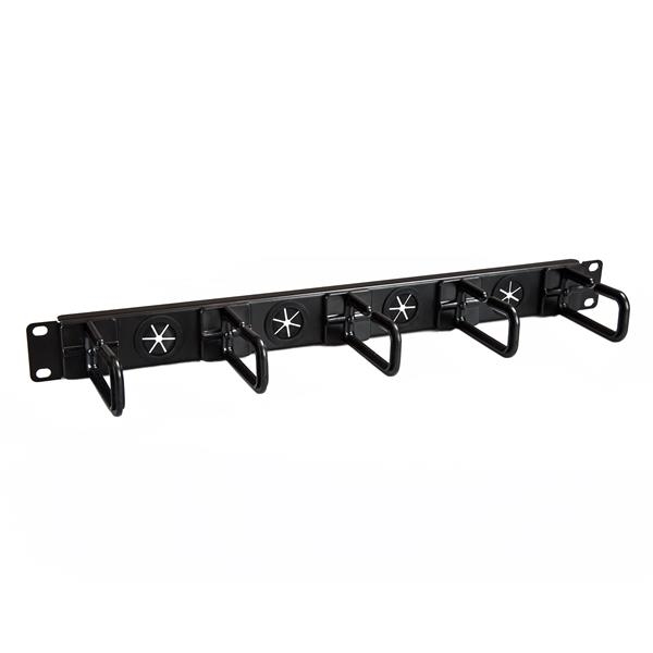 The rack-cable management panel makes it easier to organize cables from the front or back of your server rack. It features five conveniently placed D-ring hooks that you can use to hold and guide cable bundles running vertically and horizontally. To bundle and route cables through the panel, the cable manager also features four holes designed to seamlessly route cables in and out of your rack.