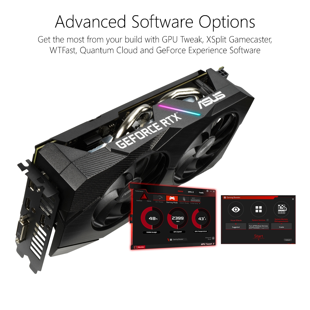 Delivering the latest NVIDIA Turing™ gaming experience in its purest form, the ASUS Dual GeForce RTX™ 2060 EVO melds performance and simplicity like no other. Leveraging advanced cooling technologies derived from flagship graphics cards, the Dual GeForce RTX™ 2060 opts for substance over style, the perfect choice for a well-balanced build. Buckle up and engage cutting-edge gaming prowess.