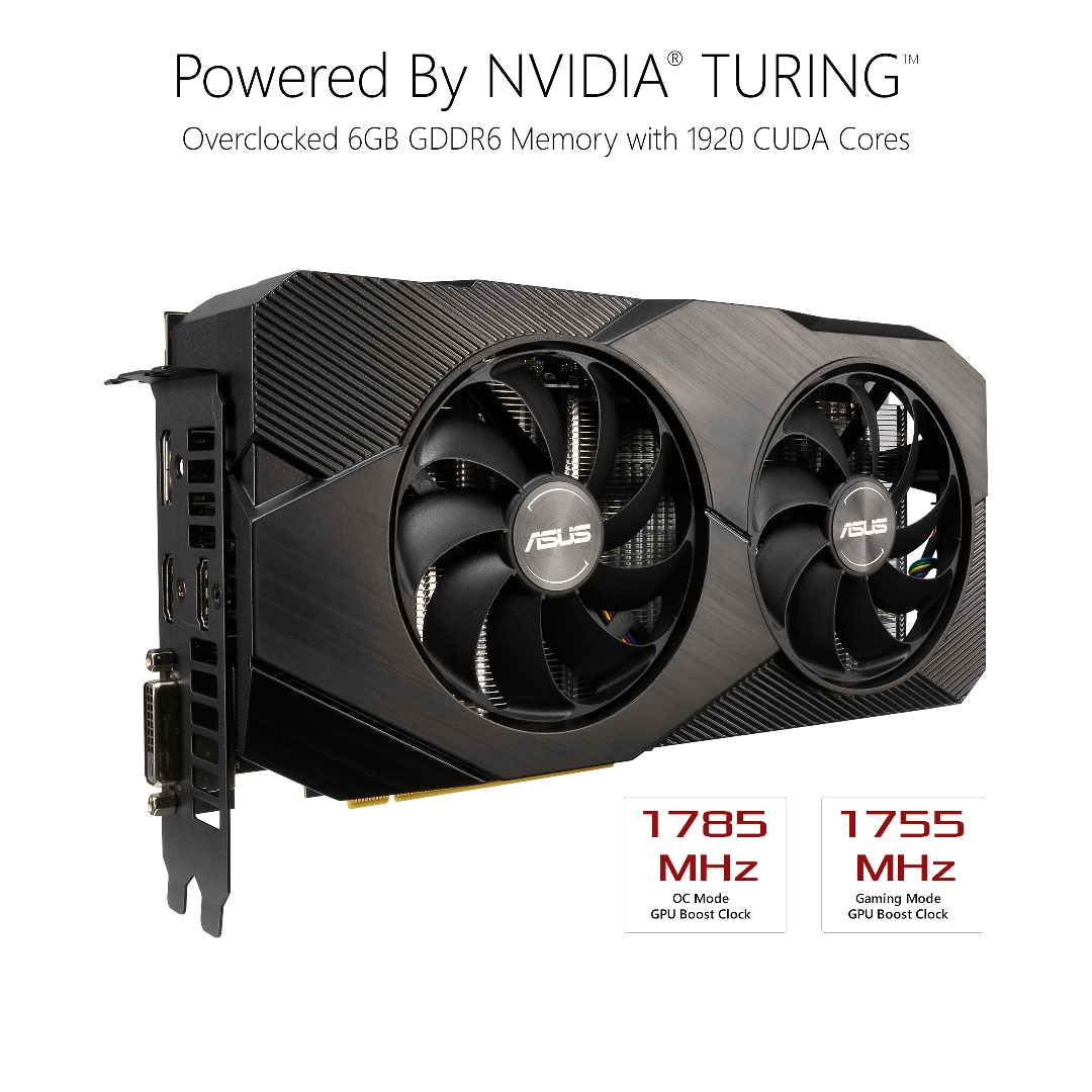 ASUS Video Card DUAL-RTX2060-O6G-EVO GeForce RTX 2060 OC EVO 6GB GDDR6 192Bit DVI/HDMI/DisplayPort Retail