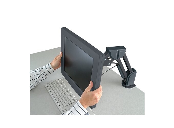 • Arm extends, rotates, tilts and swaps monitor from landscape to portrait orientation