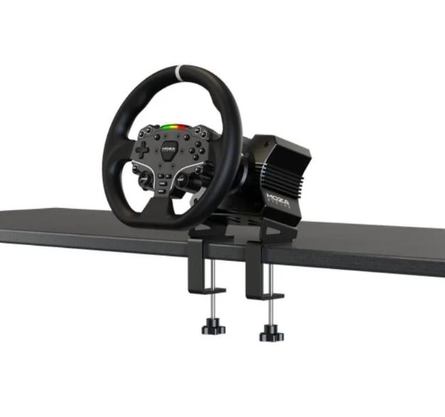 Use the R5 table clamp that comes with the bundle to mount the MOZA R5 to a table or desk.