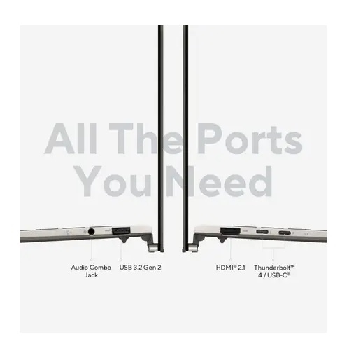 All-day 63Wh battery** - Keep your stress levels low with an all-day battery that provides 13+ hours of battery, equipped with Fast-Charge technology, accessible through its Thunderbolt™ 4 ports.
