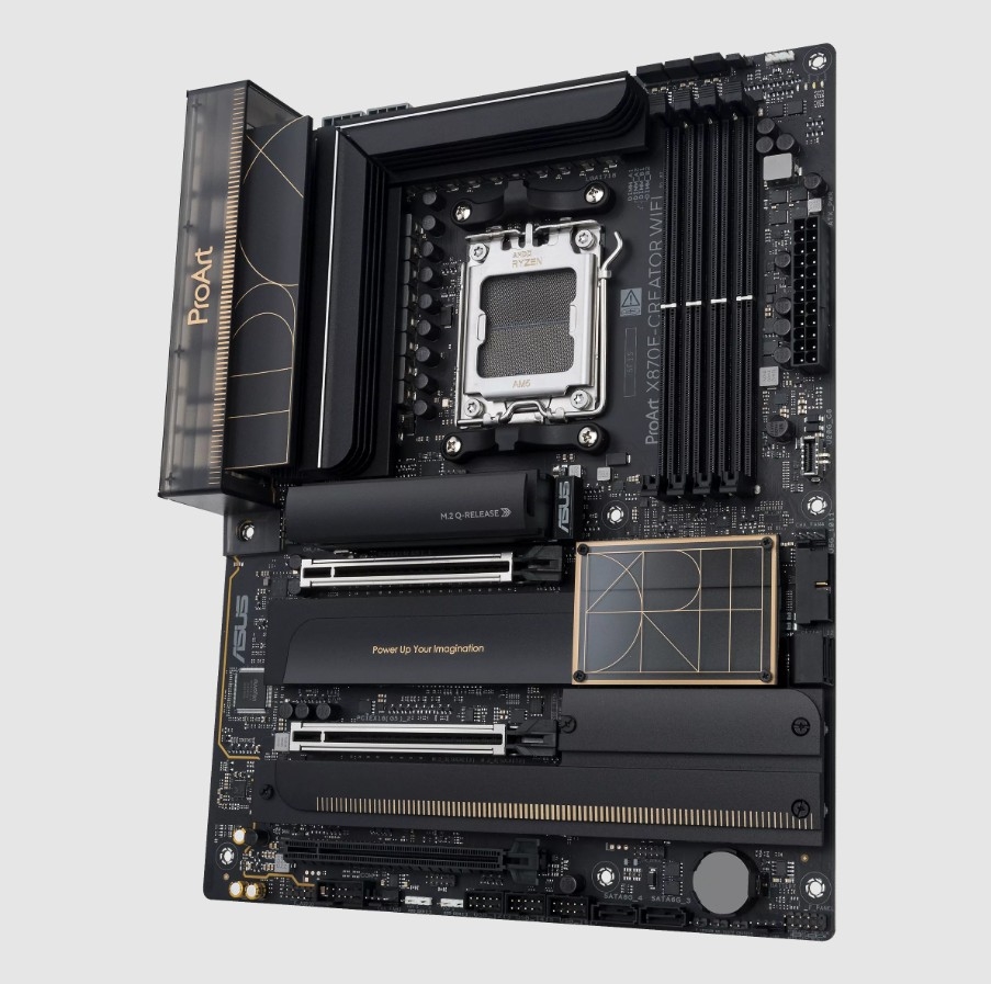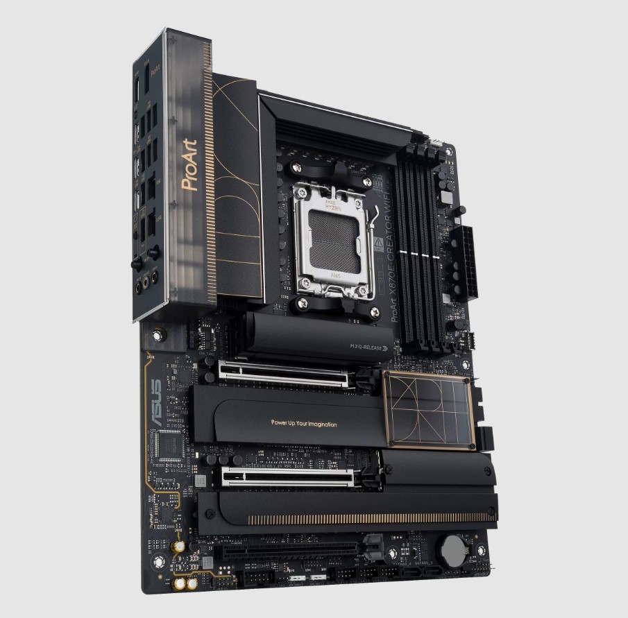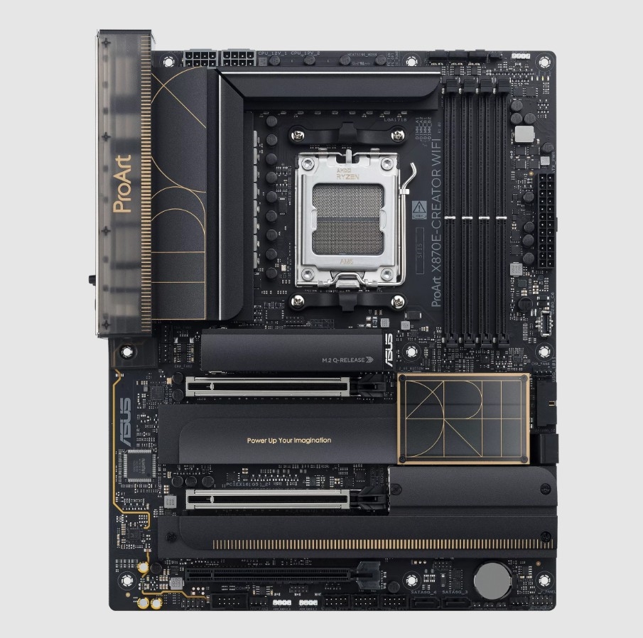 The ProArt X870E-Creator WiFi empowers creators of all levels by maximizing the performance of the latest AMD Ryzen 9000, 8000 and 7000 Series processors with 16+2+2 team power stages, DDR5 slots, PCIe 5.0 and lightning-fast connectivity including dual USB4, 10G and 2.5G Ethernet, and WiFi 7.