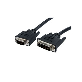 This 10ft DVI to VGA Monitor Cable features a DVI (analog) male connector and a VGA (High Density D-Sub) male connector, providing a cost-effective way to connect an analog or dual mode Flat Panel Display to a PC or Mac computer with a DVI Analog Video Card .Expertly designed and constructed of only high quality materials, the 10ft DVI to VGA Monitor cable is backed by StarTech.coms Lifetime Warranty.