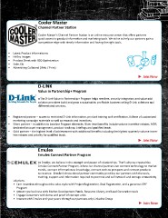 We designed the partner beneits to help partners grow their business and maximize proitability. Cooler Master’s Channel Partner Staion is an online resource center that ofers partners