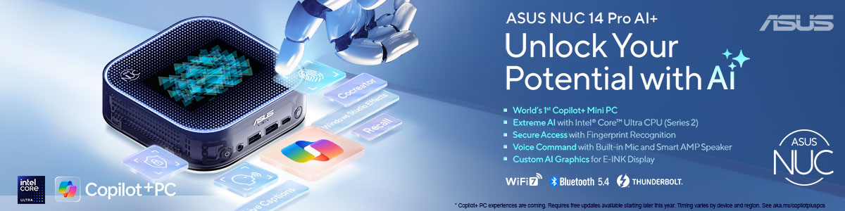 ASUS NUC 15 Pro- AI-Enabled Mini PC Powered by Intel® Core™ Ultra processors (Series 2). Designed as the best compact choice for the AI-driven future.